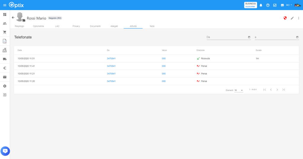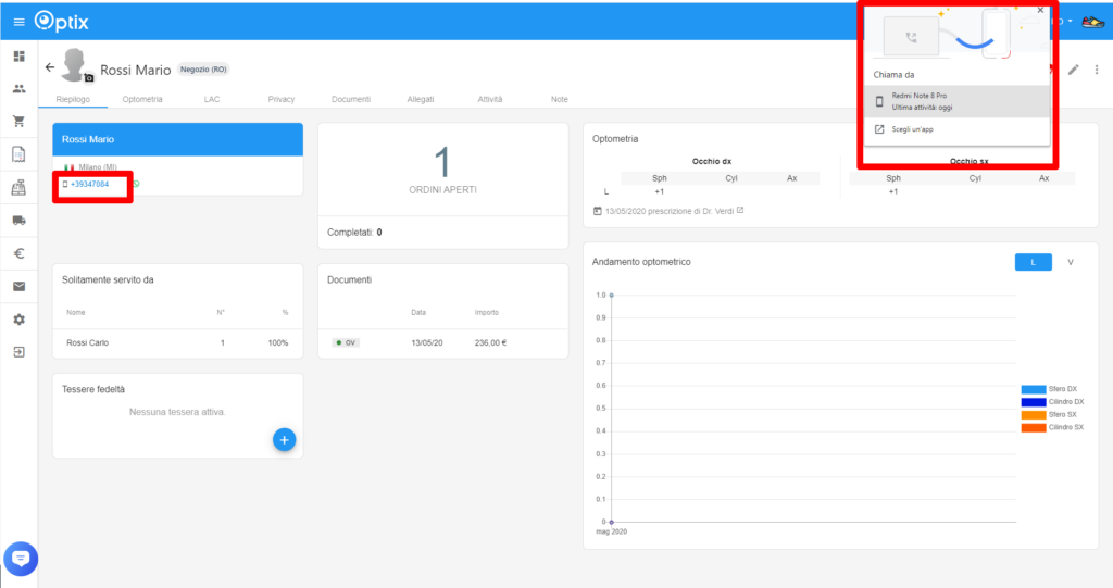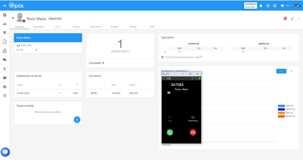 I commessi possono utilizzare le informazioni disponibili nel profilo di un contatto, come l’ultima scheda optometrica, gli ultimi acquisti effettuati, le ultime LAC fornite, per valutare meglio il contesto della chiamata. Ciò consente di avvicinarsi al potenziale cliente dalla giusta angolazione e personalizzare il messaggio chiave.