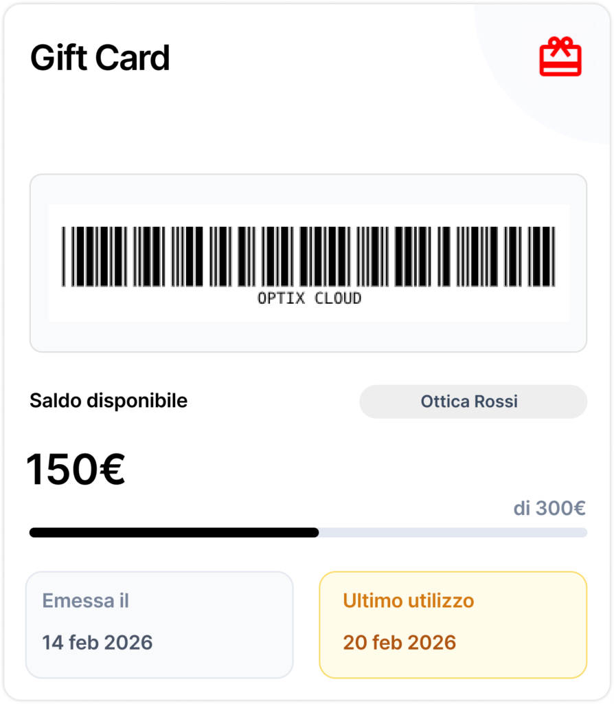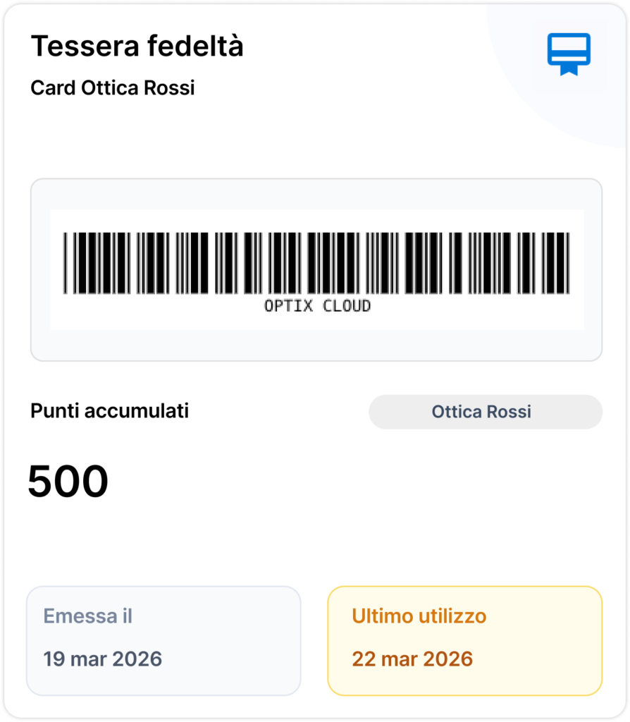 Puoi attivare la fidelity card direttamente da Optix, senza strumenti esterni, è tutto digitale.