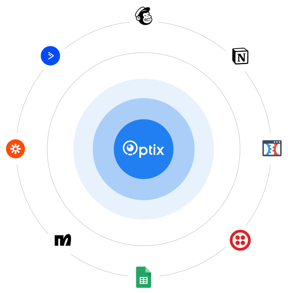 Zapier è uno strumento di automazione che collega Optix a migliaia di app (es. Google Sheets, Facebook, Mailchimp).